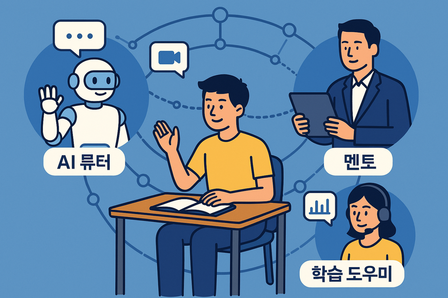 AI 튜터, 인간 멘토, 학습 지원 도우미가 하나의 플랫폼에서 연결되어 학생에게 전방위 지원 제공