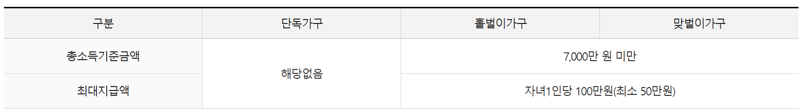 - 맞벌이 가구의 소득 기준이 상향되어 더 많은 가구가 혜택을 받을 수 있습니다.
