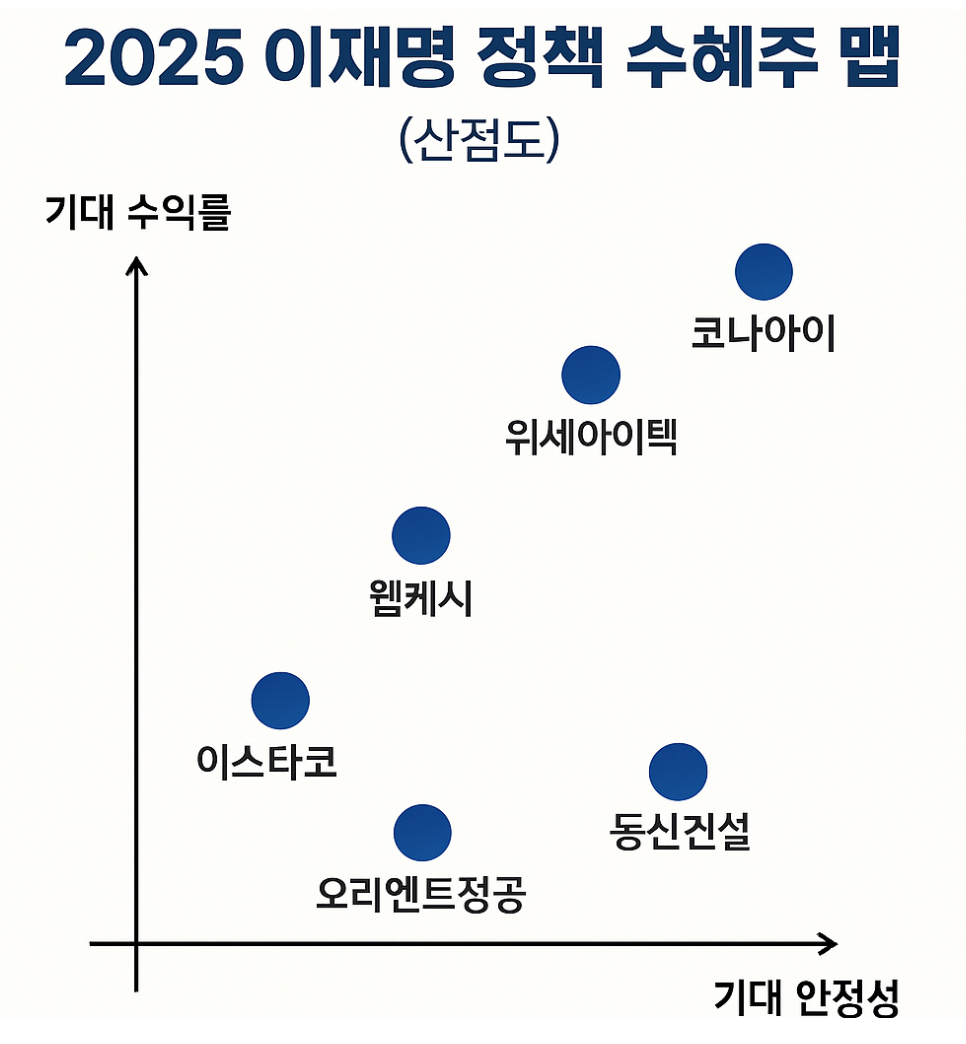 📊 추가 시각화 자료 – "이재명 정책 수혜주 맵" (산점도)